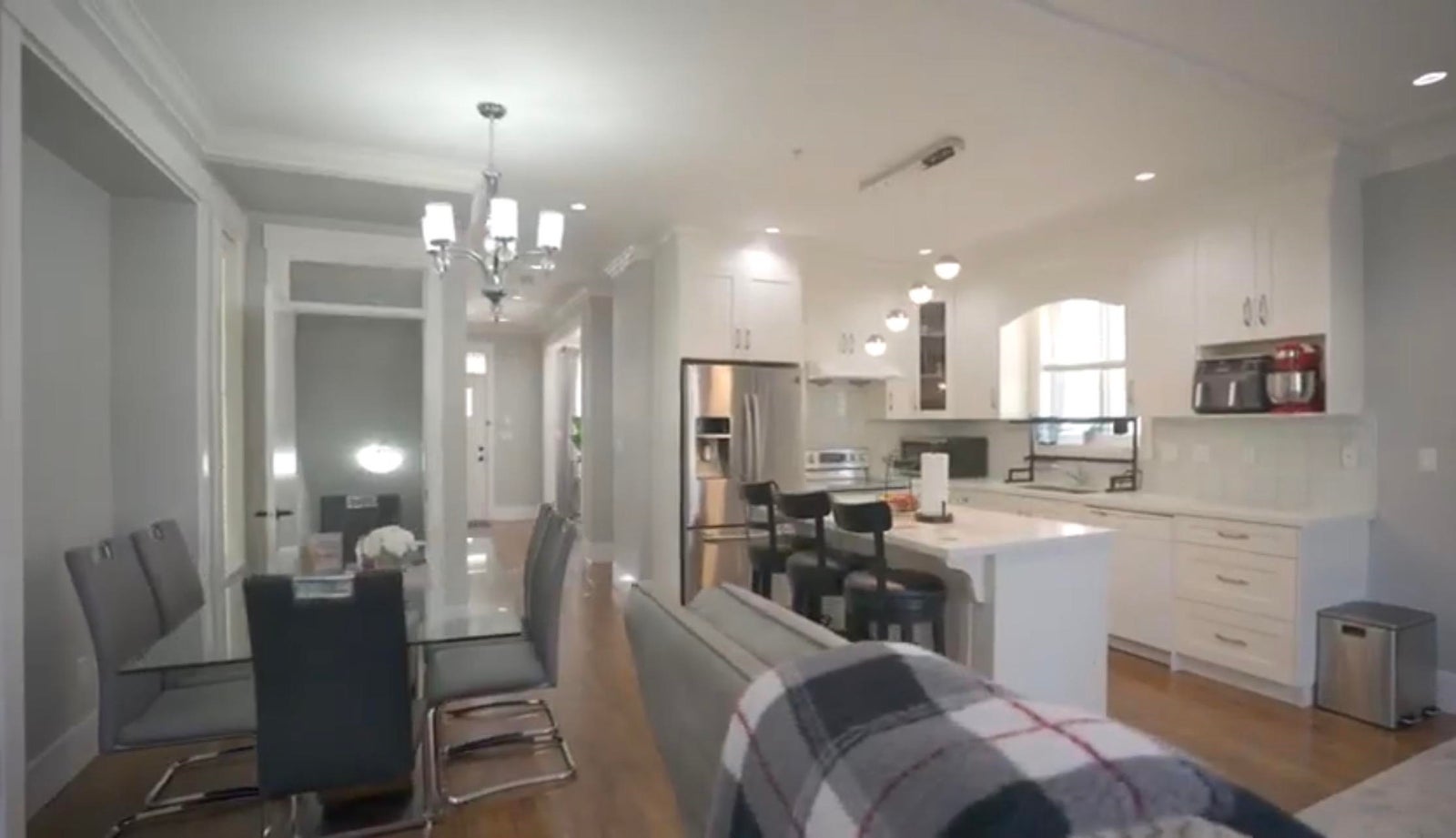 Beautiful 4-bedroom, 3.5-bath family home featuring high ceilings and stylish engineered laminate flooring throughout. The open-concept kitchen offers an oversized island with stone countertops and flows seamlessly into a spacious family room highlighted by a high-end gas fireplace. Upstairs, you'll find a generous primary bedroom suite, two additional bedrooms, and a full bathroom. The basement includes a separate entrance, a large bedroom, and a full bathroom - ideal as a mortgage helper or private guest space. Conveniently located close to schools, parks, and shopping. Available now - showings by appointment only.